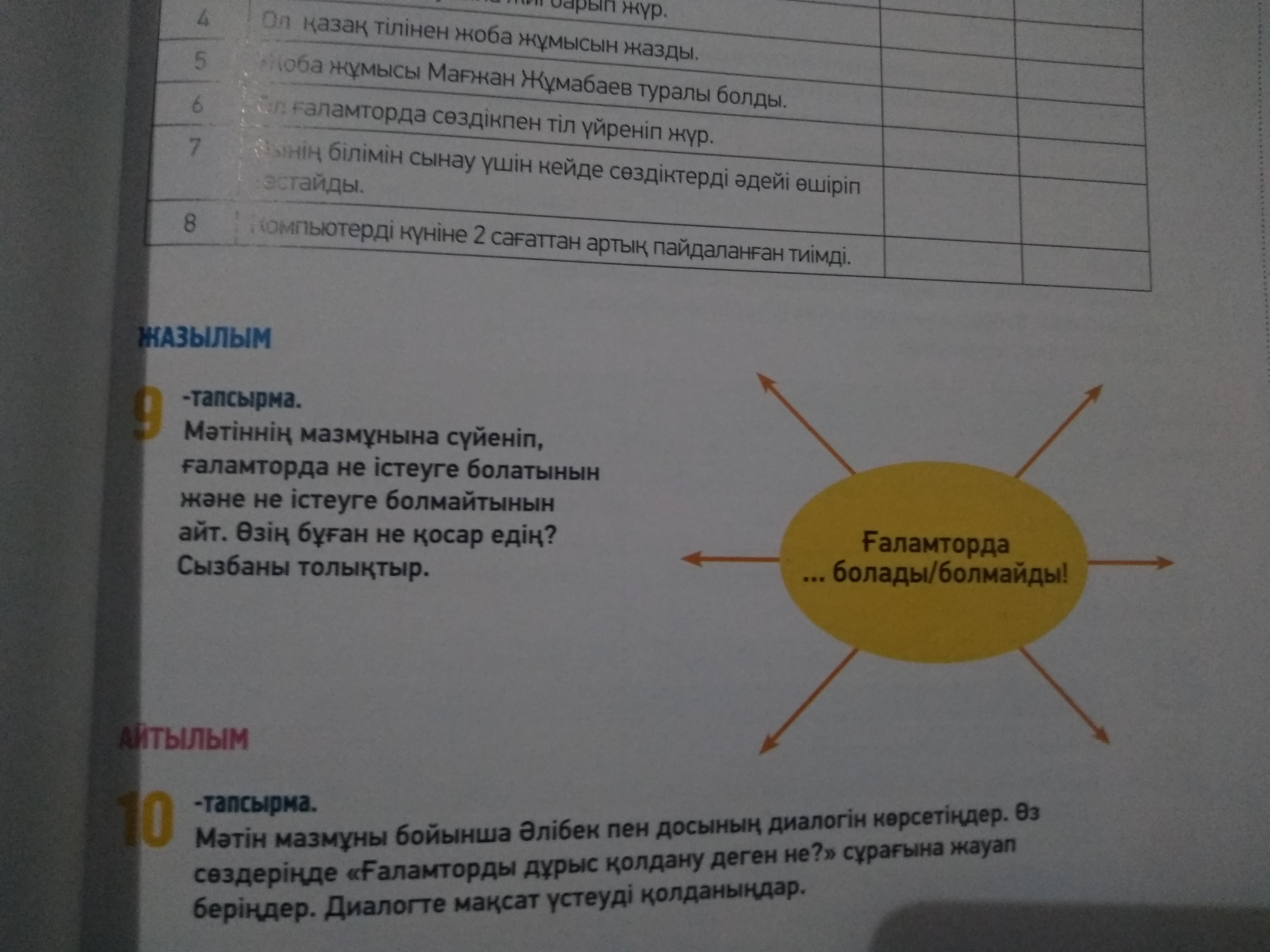 Здесь вам нужно написать что можно делать в интернете, а что нельзя. Спервав черновик напишите на русском, а потом можно перевести на казахский