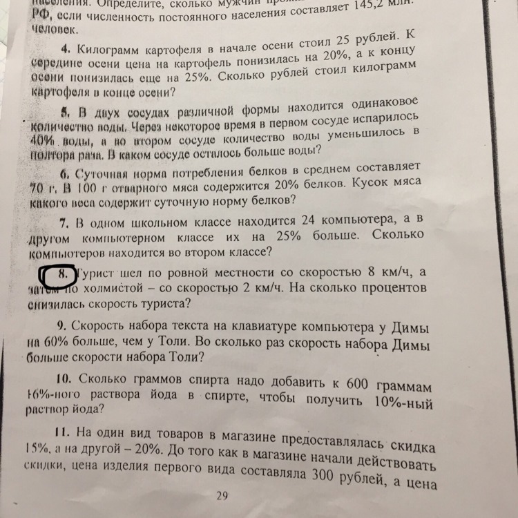 Теперь найдём разницу или на сколько снизилась скорость туриста: 100-25=на 75%