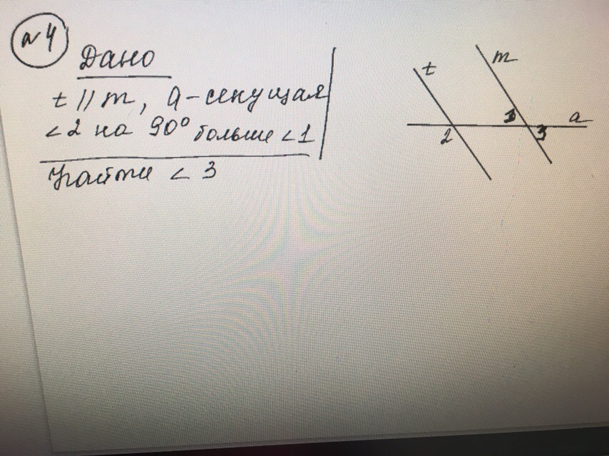 Угол 1= углу 3 (вертикальные). Угол 1=(180-90)/2=45°=∠3.