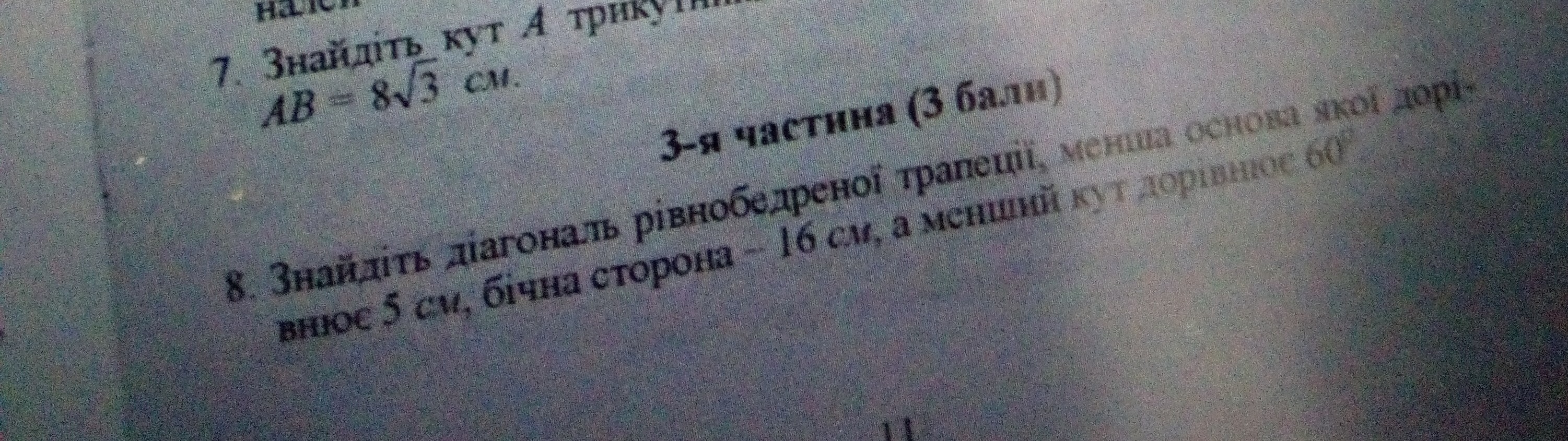 на русском - Найдите диагональ равнобедренной трапеции основа которой меньше ее =5 см боковая сторона 16 см а менший угол равен 60°