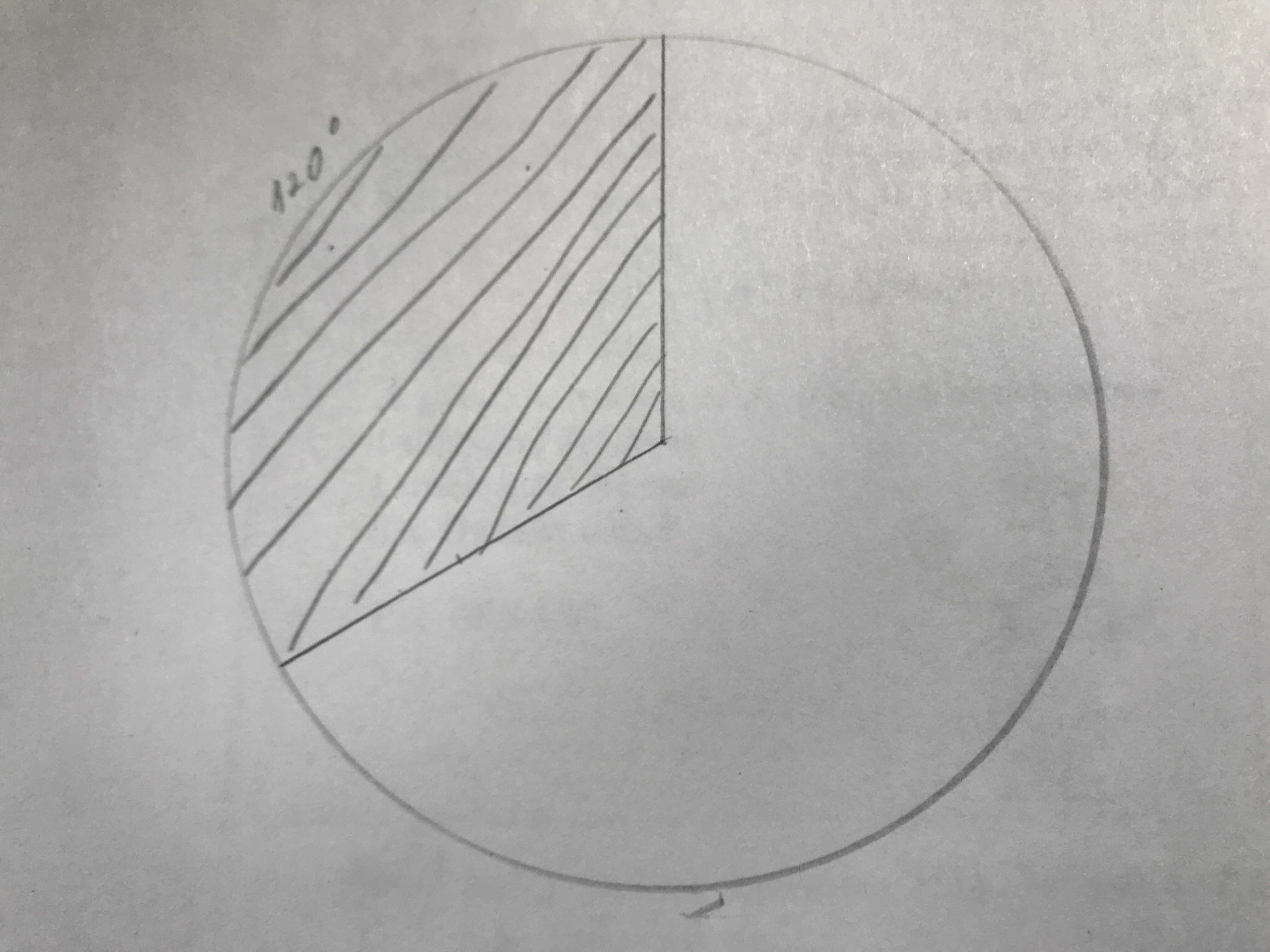 Начертите окружность и постройте два ее радиуса угол между которыми 120 градусов закрасьте часть круга между этими радиусами Какая часть круга окажется закрашенные Какая часть округа останется не закрашенной