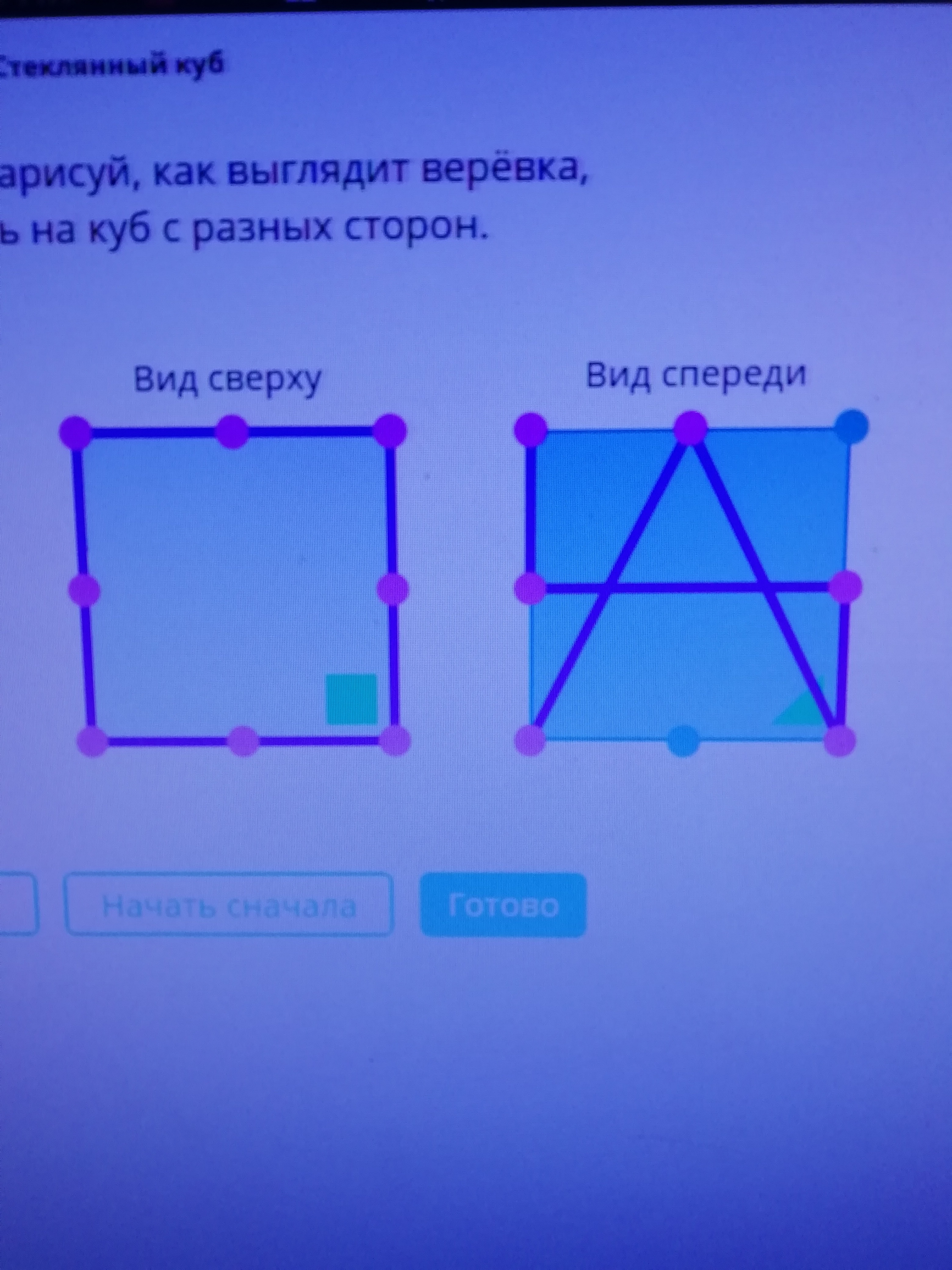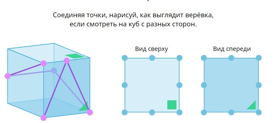 Соединяя точки нарисуй, как выглядит веревка, если смотреть на куб с разных сторон.