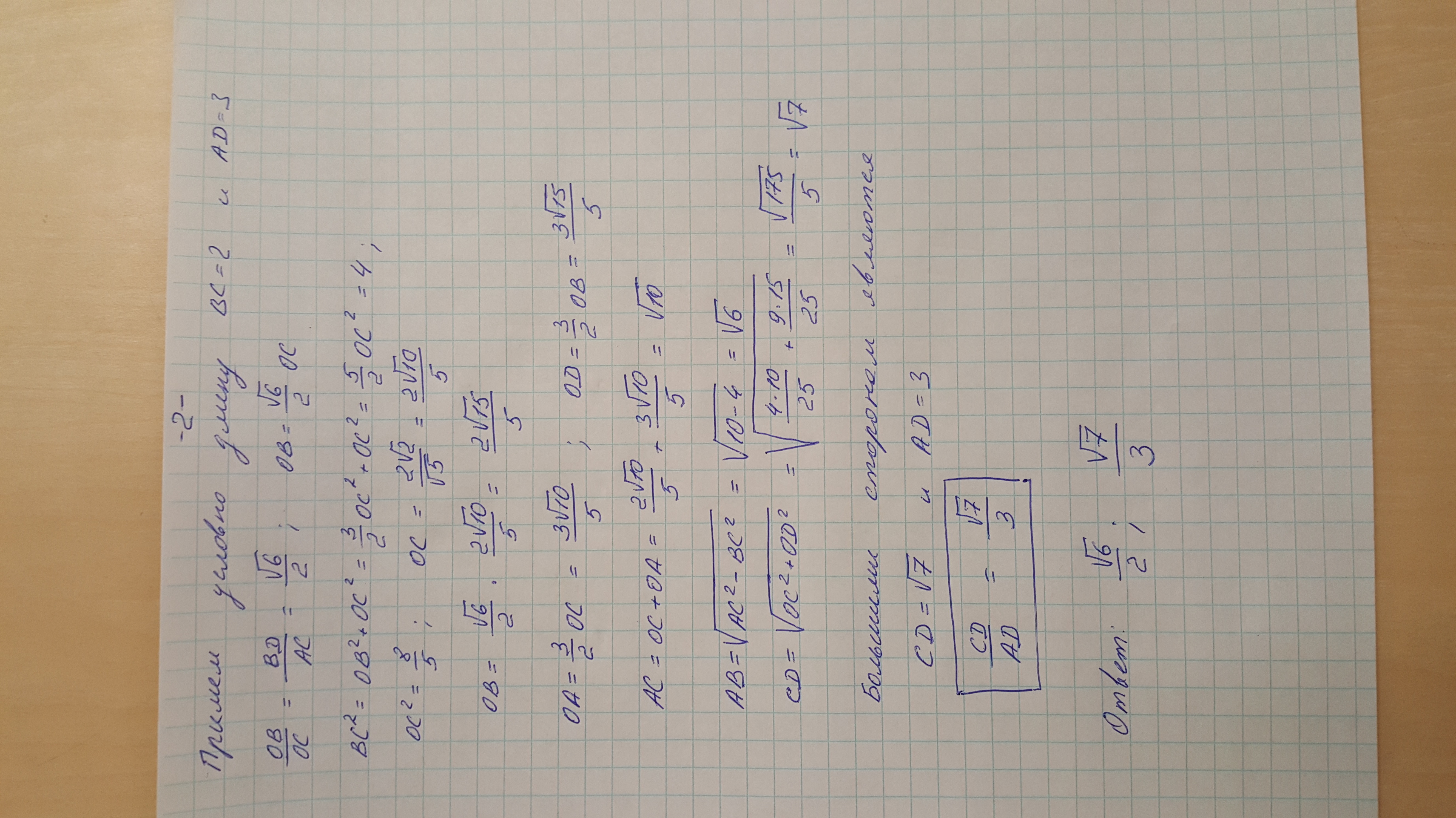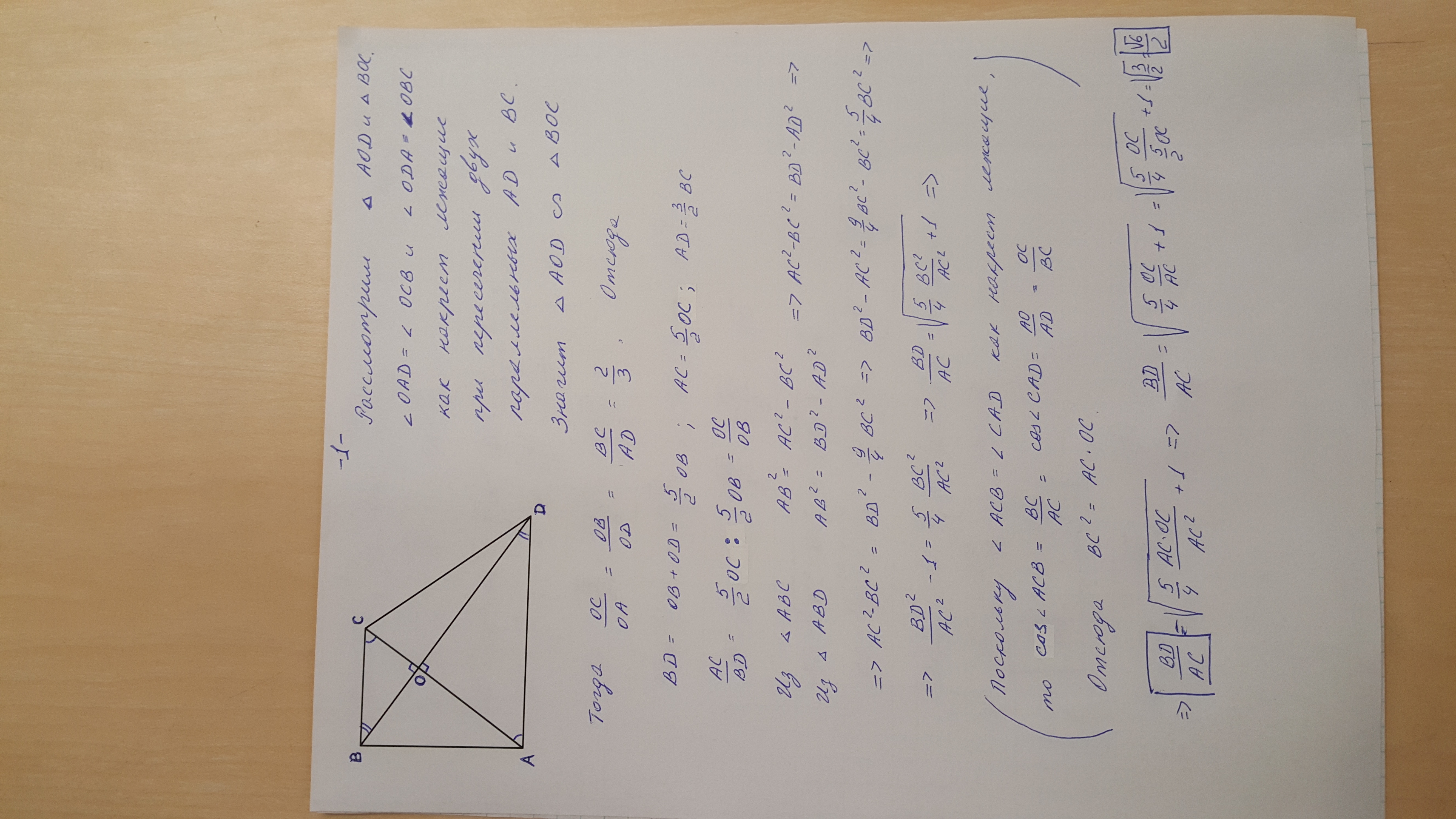 В прямоугольной трапеции диагонали взаимно перпендикулярны, а длины оснований относятся как 3:2. Найти отношения больших сторон и отношение длин диагоналей