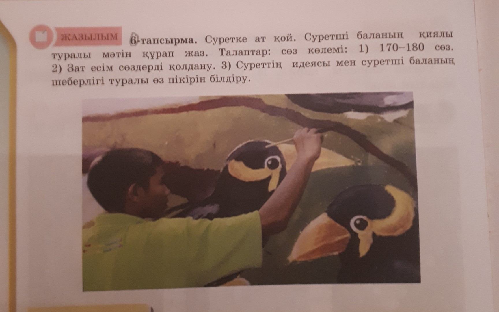 Ол сурет өнерін 3-жасында-ақ,қолына қарандаш ұстағаннан бастап,қызығушылығы басталған.Есімі-Қанат.Бұл өнер өз әкесінен дарыған."Әкеге қарап ұл өсер"-,демекші,суретті тамаша салады.Әкесі,атақшы суретші және қол өнер шебері.Қанат әкесінің өнерін жалғаушы,әрі шәкірті.Салған туындылары,жарыстарда бас жүлдеге ие болуда.Қанаттың болашағы жарқын,анық.Әкесі,баласынан көп үміт күтеді және сенеді.