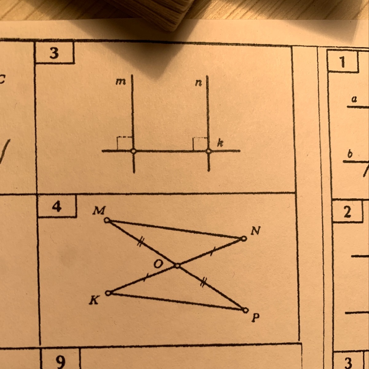 ∠MON=∠KOP -вертикальные,тогда треуг.MON=треуг.POK по двум стронам и углу между ними. тогда ∠MNK=∠NKP.а они накрест лежащие при прямых MN и KP и секущей NK.значит,MN || KP.