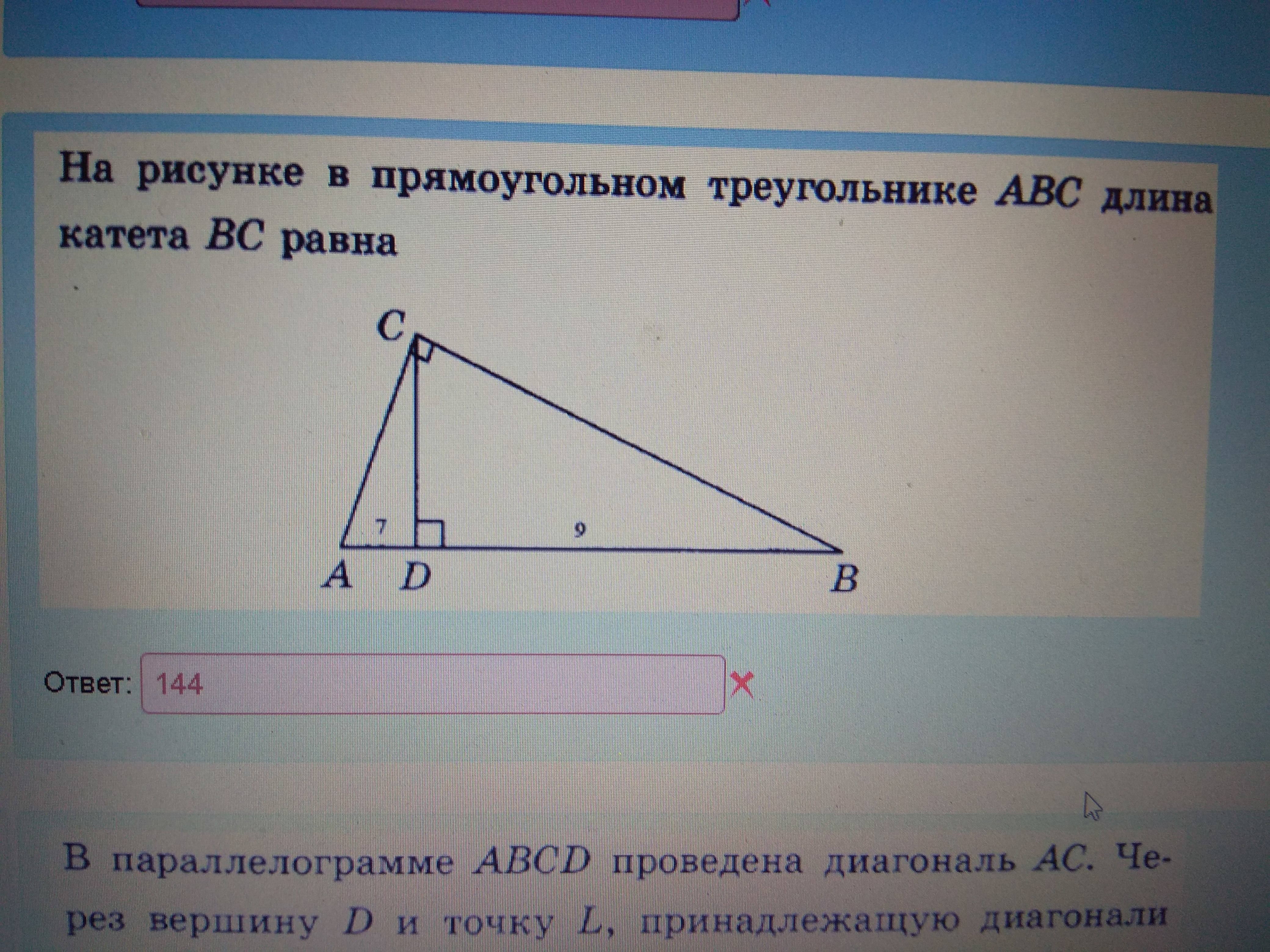 ВС=√((√63)²+9²)=√(63*81)=√144=12 ед.