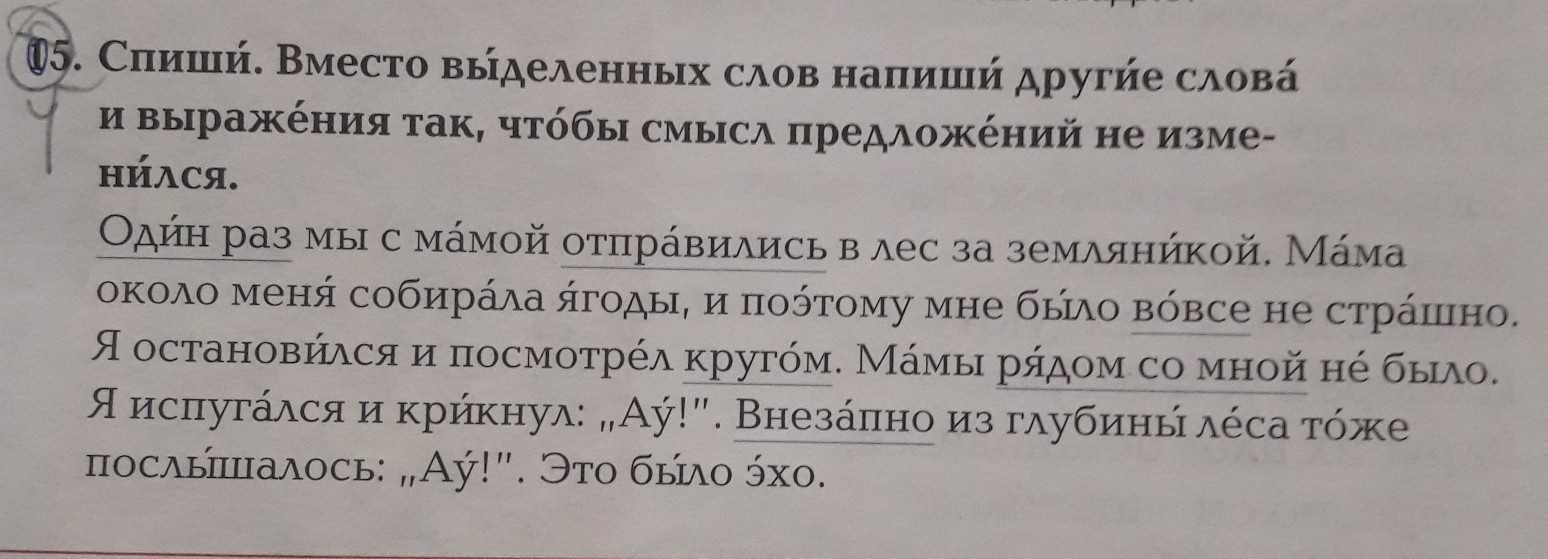 Однажды мы с мамой пошли в лес за земляникой. Мама около меня собирала ягоды, и поэтому мне было совсем не страшно. Я остановился и посмотрел по сторонам. Мамы близко не было. Я испугался и крикнул:"Ау!". Неожиданно из глубины леса послышалось:"Ау!". Это было эхо.