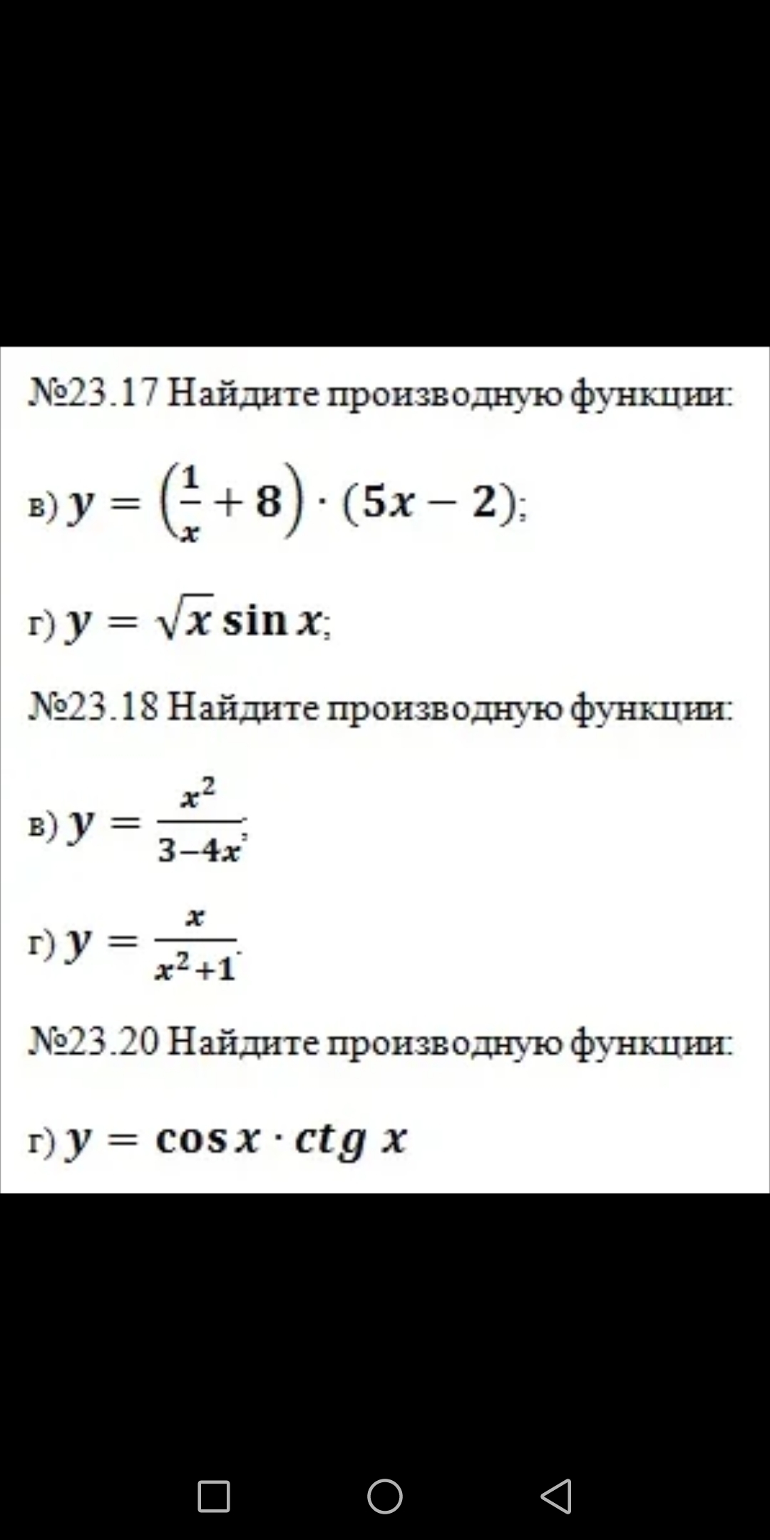 y` = (1/x +8)`(5x-2) + (1/x +8)(5x-2)` = (-1)/(x^2) * (5x-2) + (1/x +8)5 = -5/x + 2/(x^2) + 5/x + 40 = [(-5x) + (-2) + 10x]/2x^2 + 40 = 2/(x^2) + 40