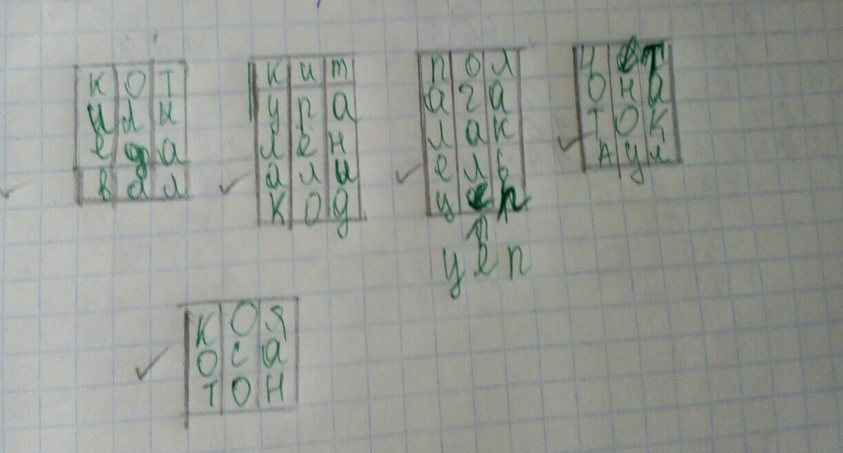 Запиши в пустые клетки такие буквы чтобы в каждом столбике получилось по три слова помогите пожалуйста