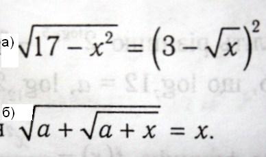 1) sqrt(17-x^2)=(3-sqrt(x)^2