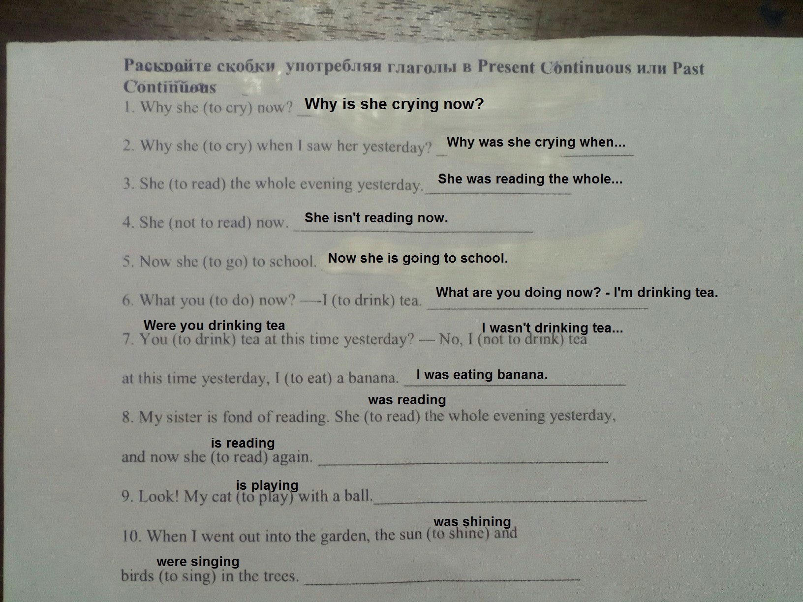 7. Were you drinking tea at this time yesterday? - No, I wasn't drinking tea at this time yesterday, I was eating a banana.