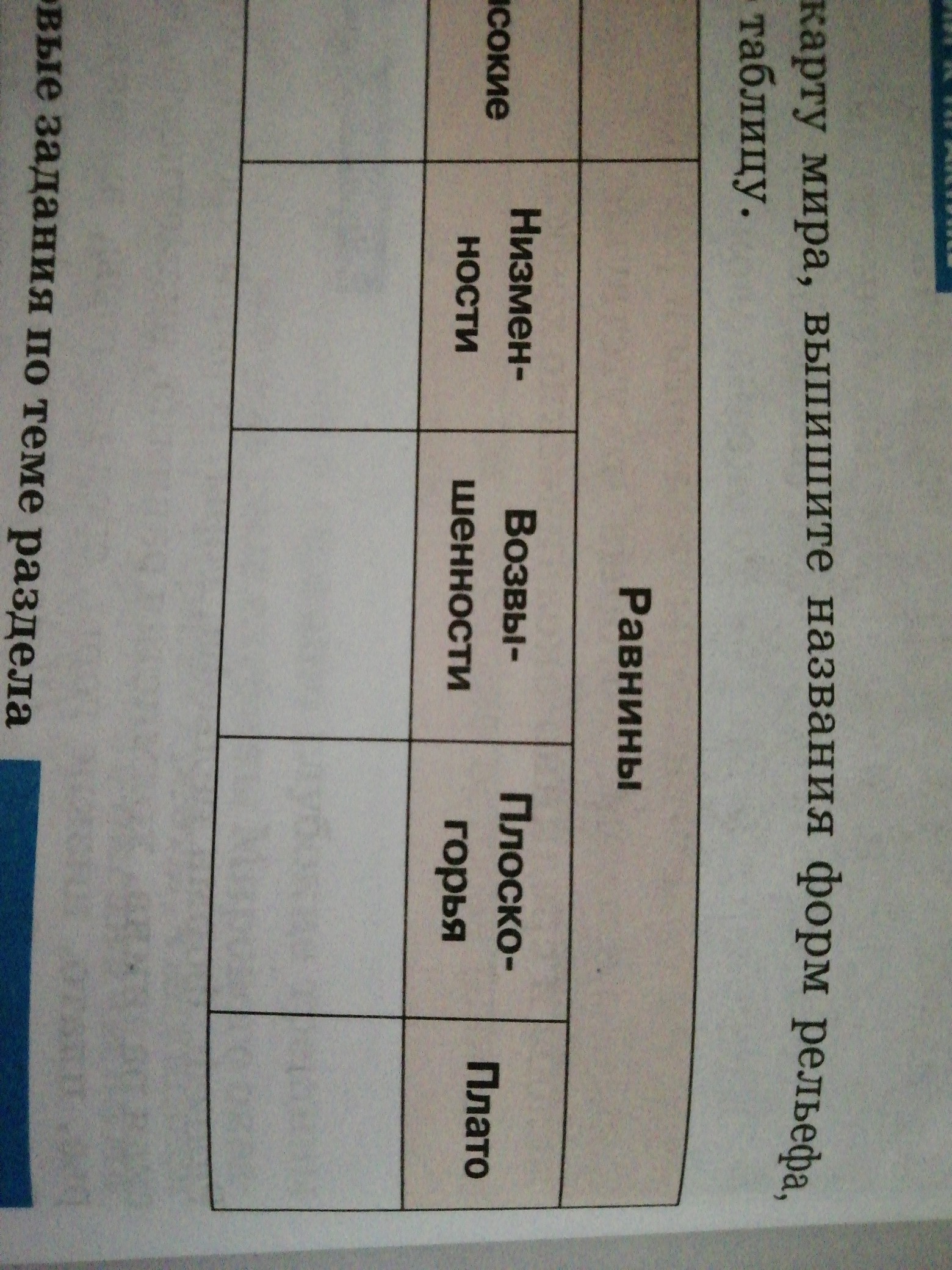 Низменности: Амазонская, Ла-Платская, Миссисипская, Индо-Гангская, Германо-Польская, Приднепровская, Причерноморская, Прикаспийская.