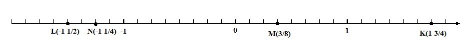 KL = |-1 1/2-1 3/4| = |-1 2/4-1 3/4| = |-2 5/4| = |-3 1/4| = 3 1/4