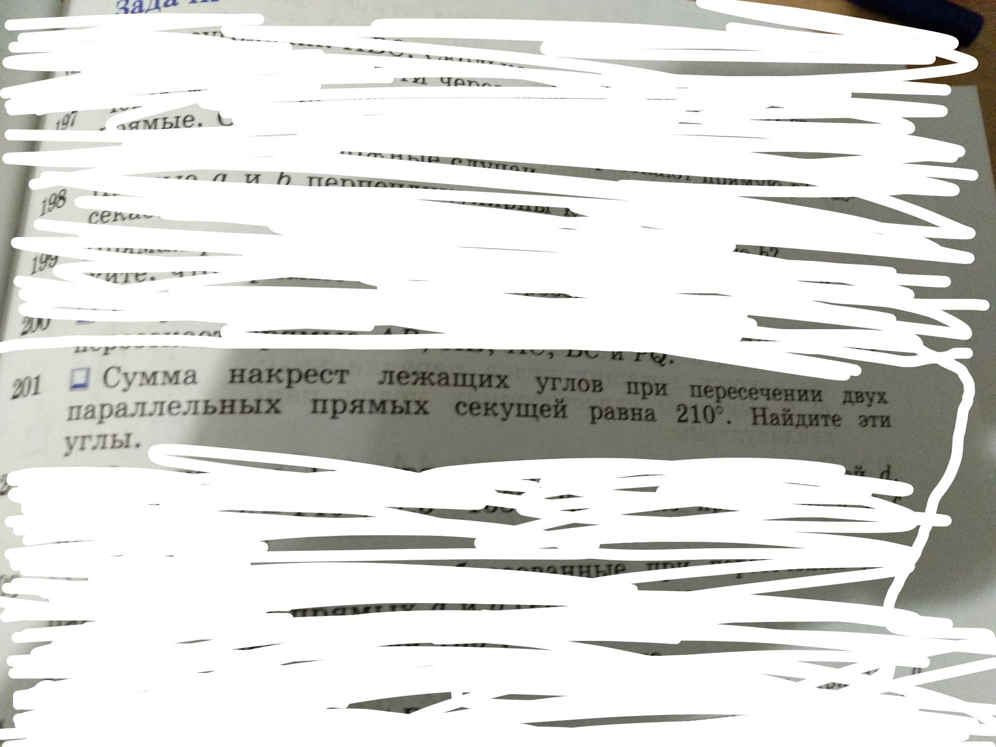 При пересечении двух параллельных прямых секущей накрест лежащие углы равны, следовательно эти углы будут по 210:2=105 градусов.