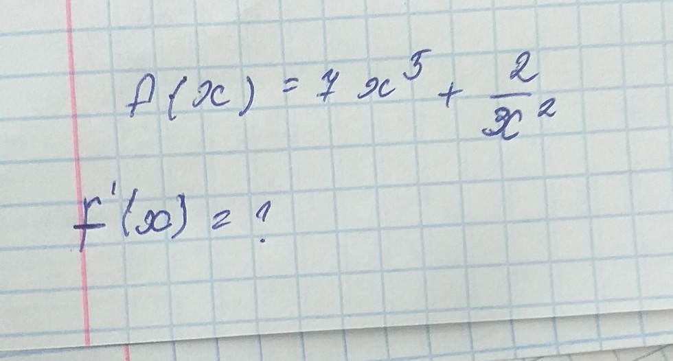 f'(x)= 7*5*x^4 + 2*(-2)*x^-3 = 35x^4 -4/x^3