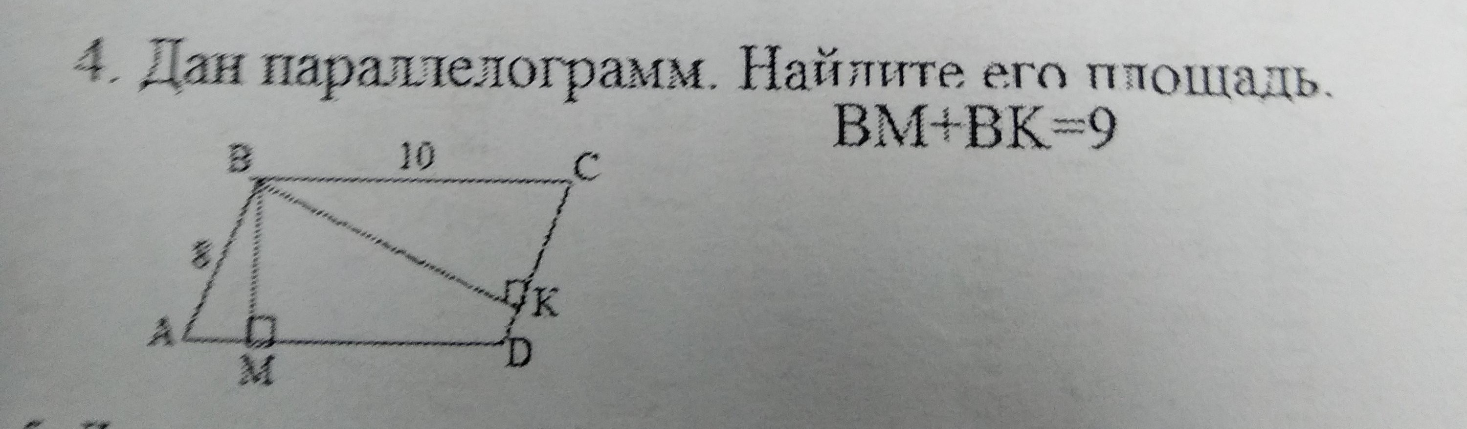 Составим отношение АВ/ВС= 0,8 следовательно МВ/ВК = тоже 0,8 поэтому ВМ = 4,ВК=5. Так как это параллелограм то стороны попарно равны следовательно АД=ВС