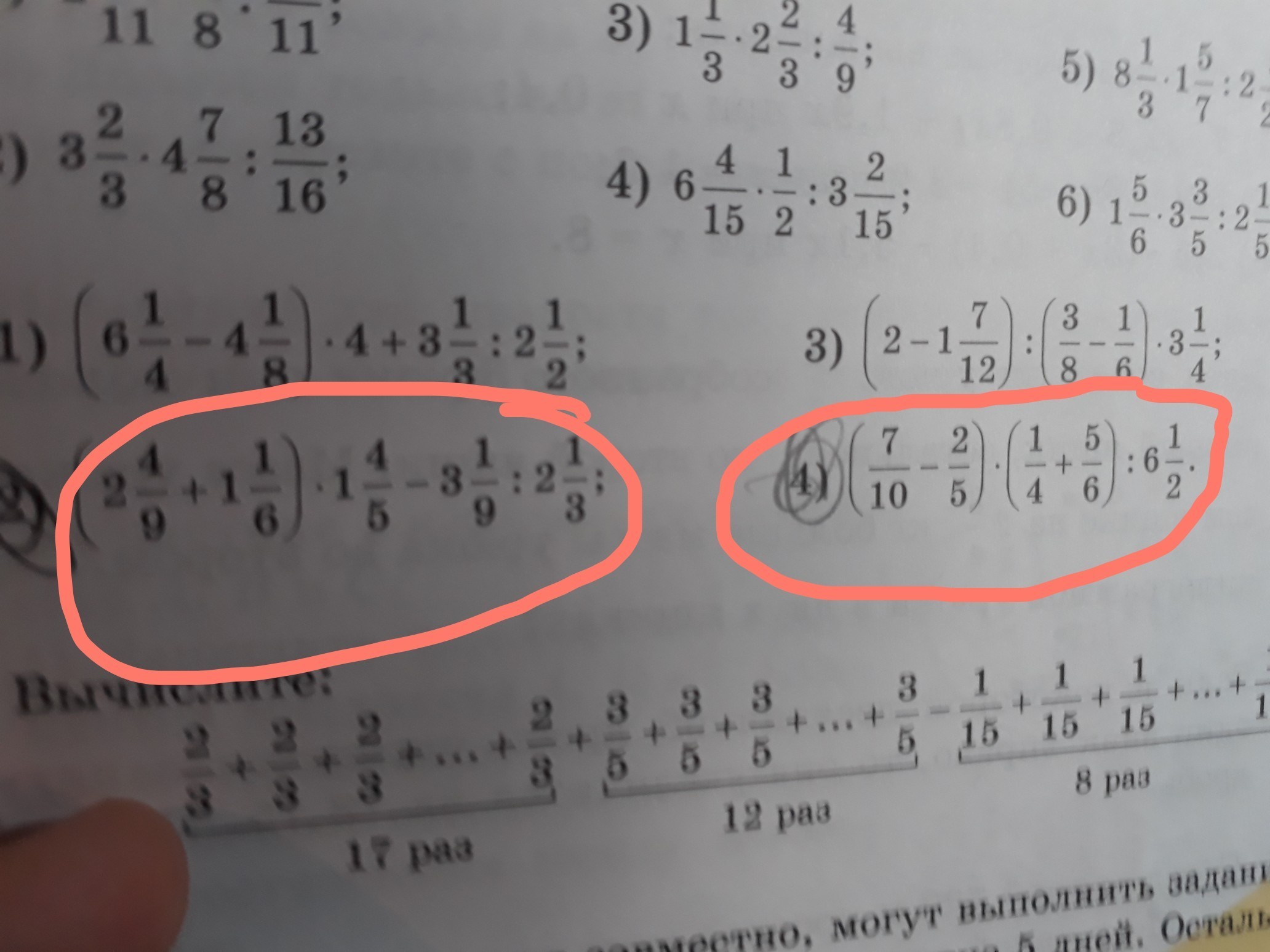 2) вторые скобки 1/4 + 5/6 = 3/12 + 10/12 = 13/12 = 1ц1/12