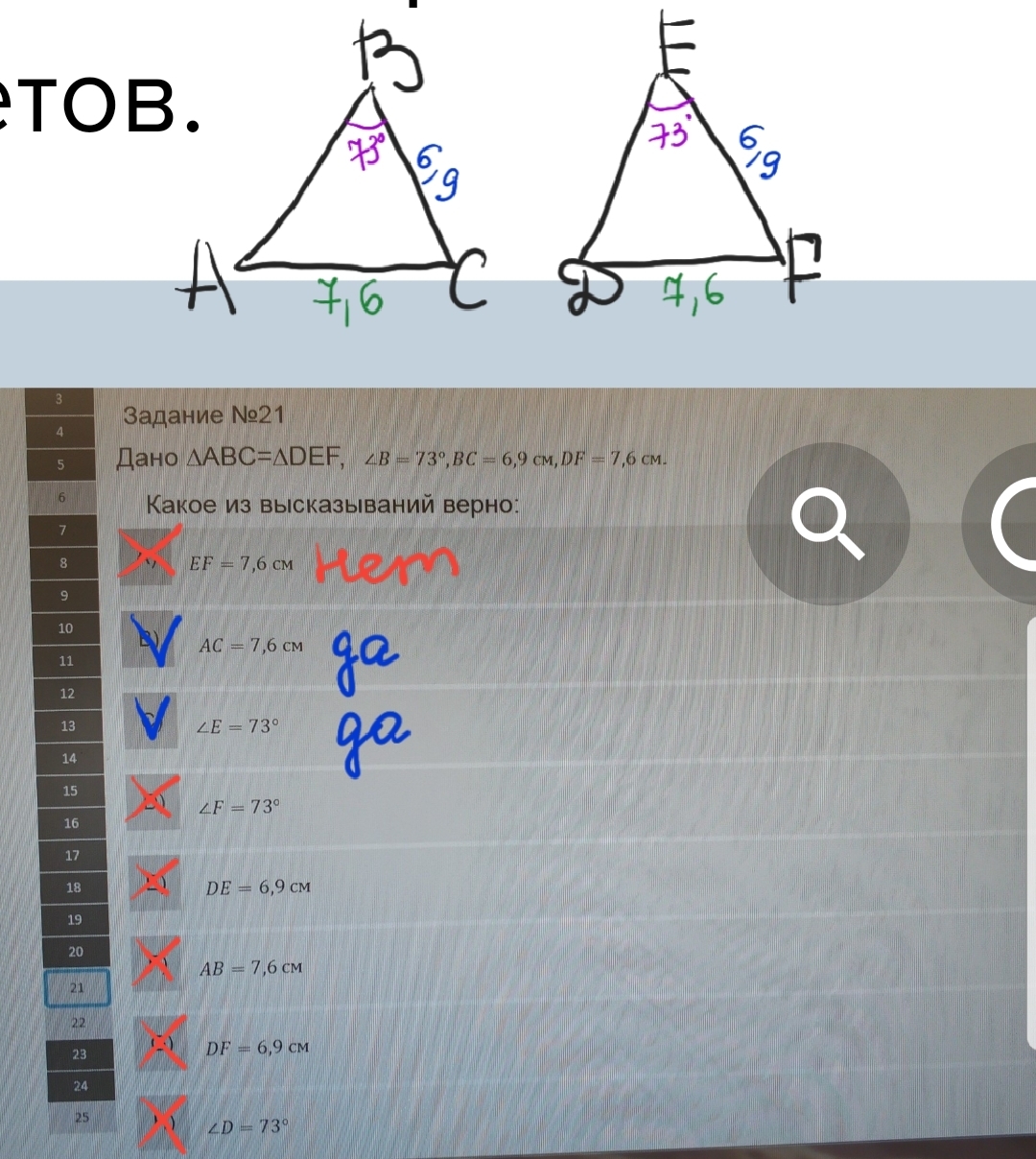 Треугольник АВС=тр.ДЕF