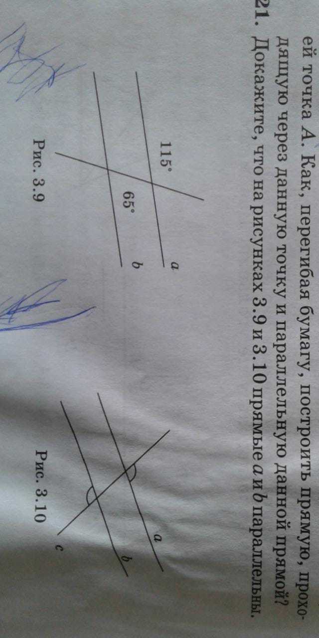 у угла 115 градусов есть вертикальный угол который тоже равен 115 градусов значит угол =115 градусам соответственный с углом который равен 65 градусов(рис 3.9)