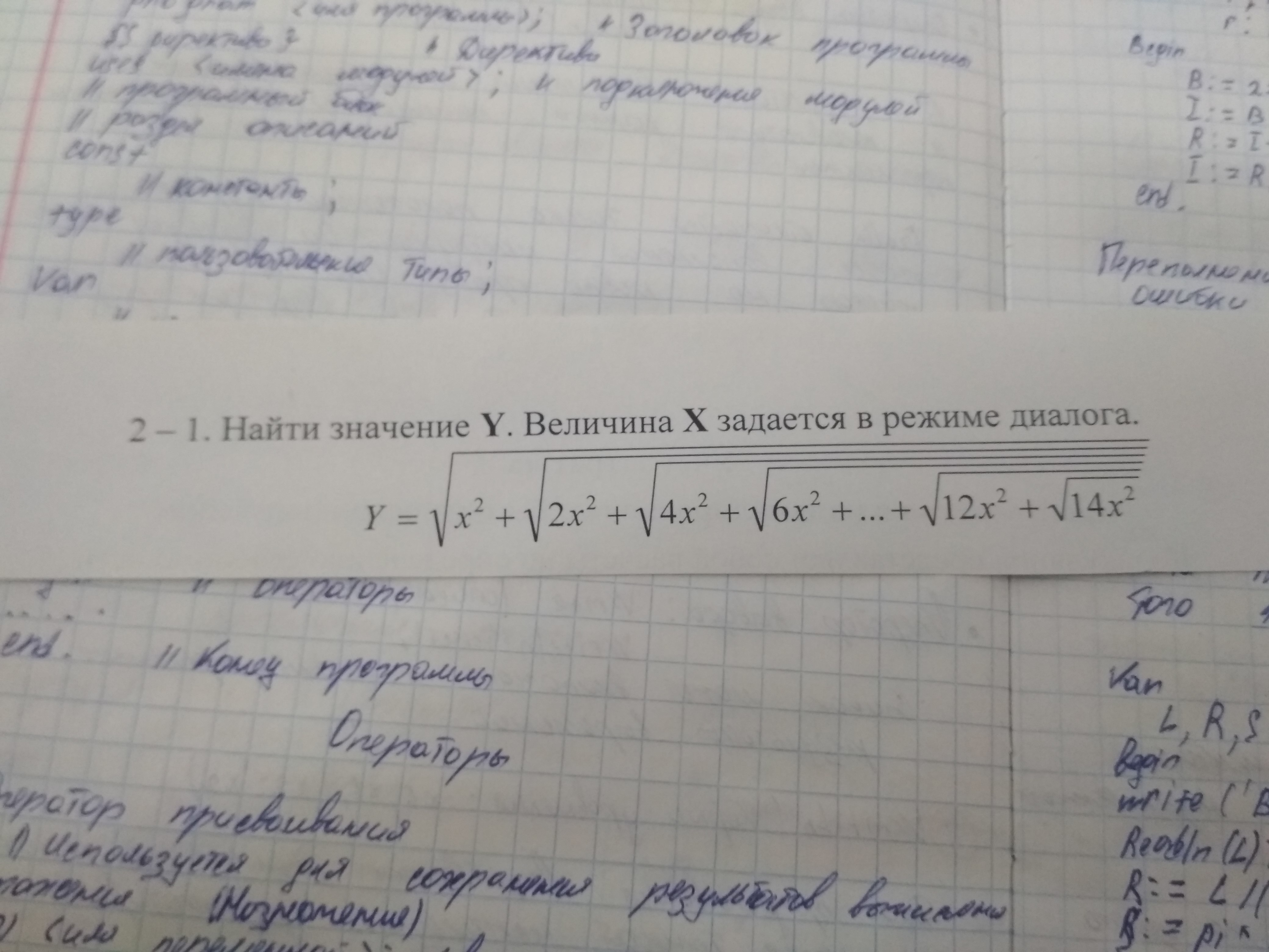 Y:=sqrt(x*x+sqrt(2*x*x+sqrt(4*x*x+sqrt(6*x*x+sqrt(8*x*x+sqrt(10*x*x+sqrt(12*x*x+sqrt(1*4x*x))))))))
