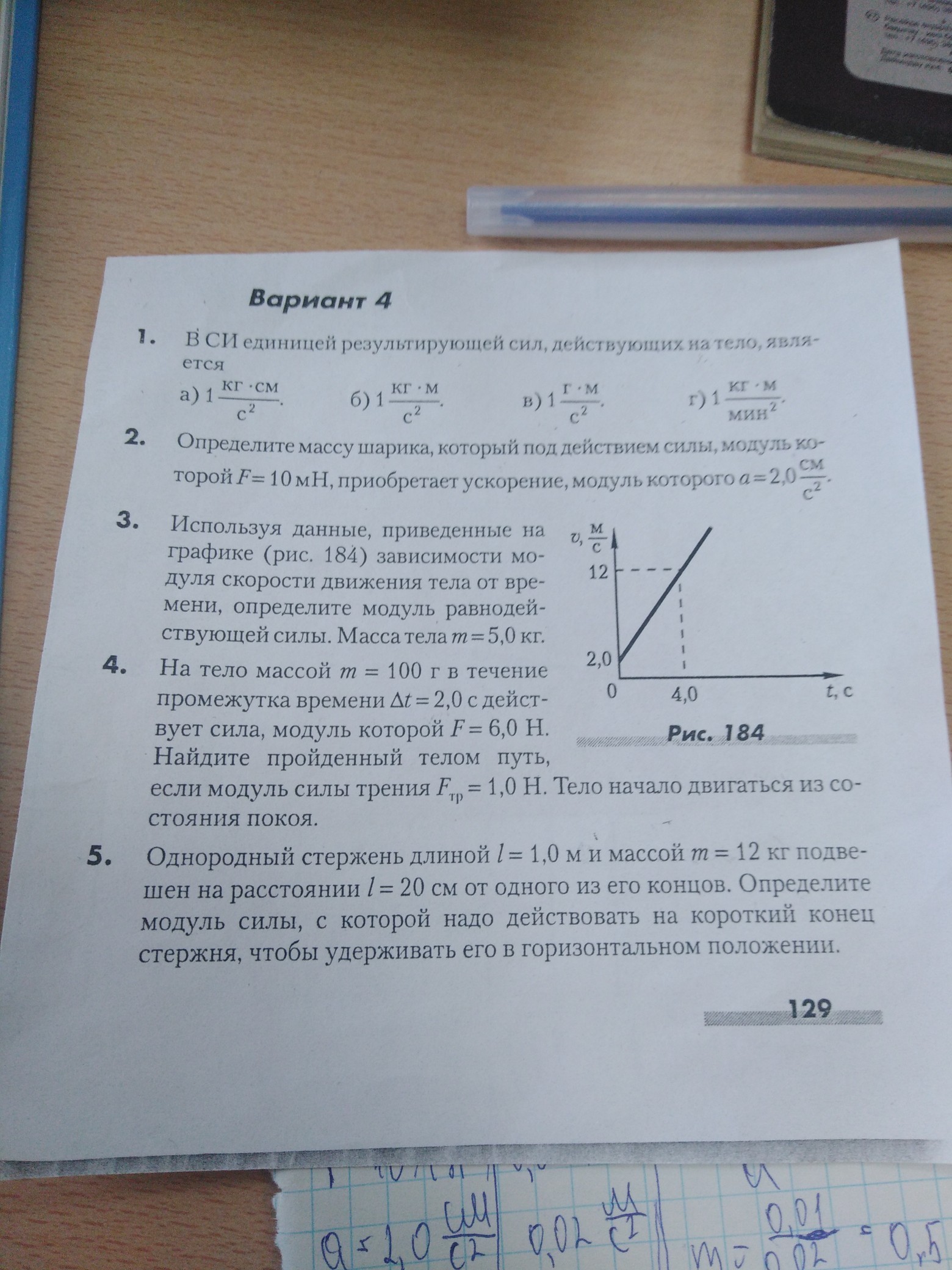 4) m=0.1 кг Δt=2 c F=6 H Fтр=1 H vo=0 s=?