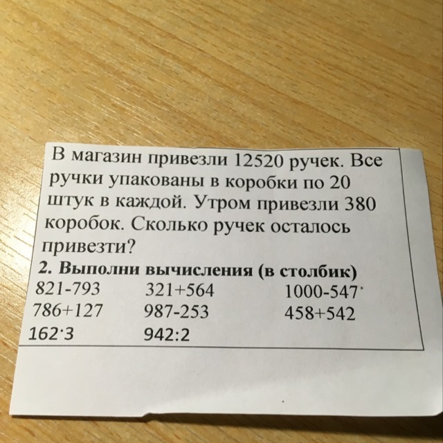 В магазин привезли 12.520 ручек все ручки упакованы в коробке по 20 штук в каждой утром привезли 380 коробок сколько ручек осталось привезти