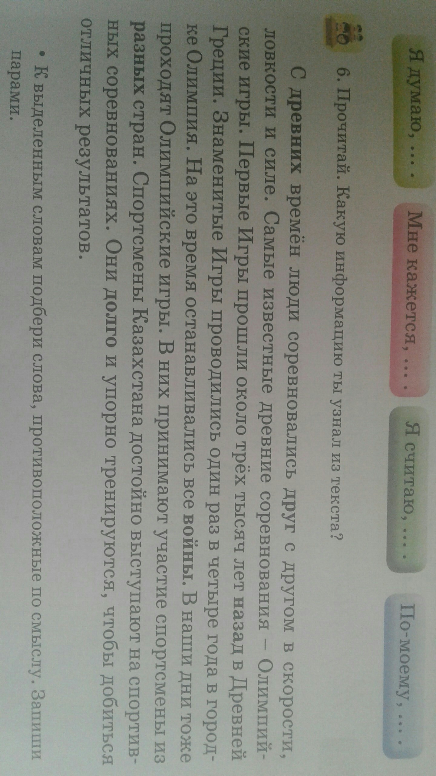 Из текста я узнал историю возникновения Олимпийских игр.