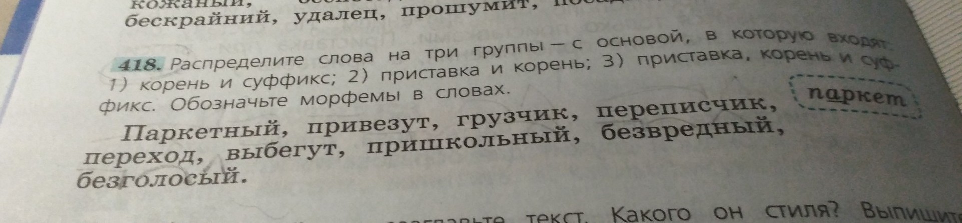 фраспредели слова на три группы - с основой, в которую входят 1) корень и суффикс 2) приставка и корень 3) приставка корень и суфикс