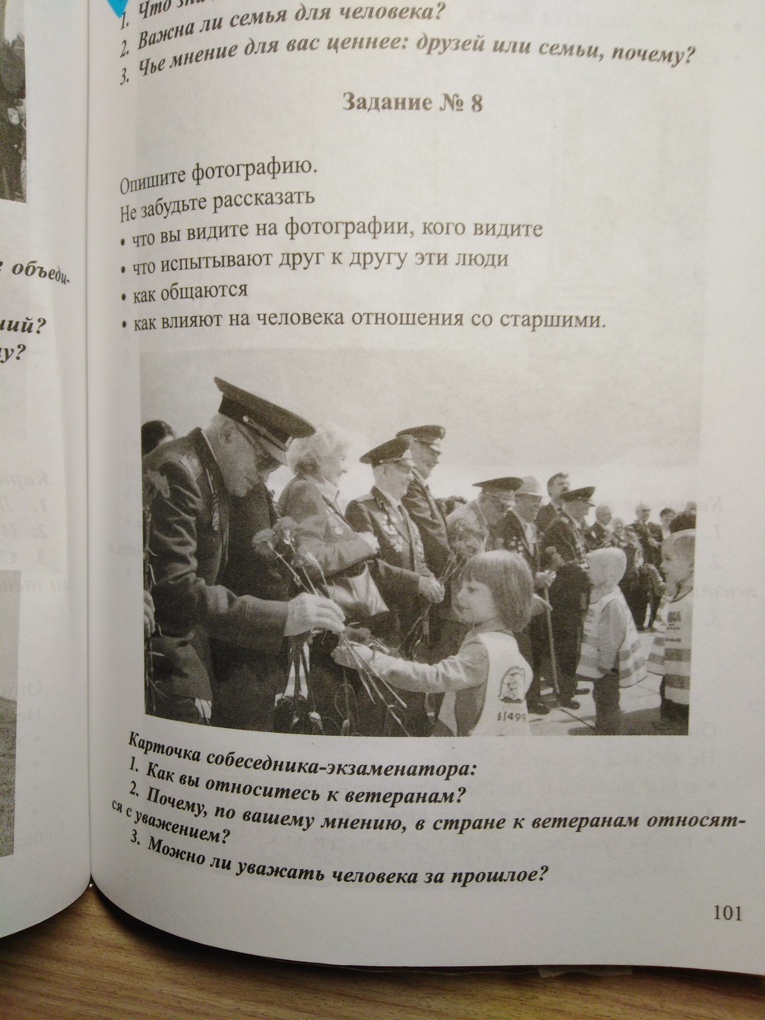 Маленькие дети дают ветеранам цветы,тем самым благодарят их за то что они спасли Родину.Мальчик испытывает чувство радости и благодарности,а ветеран испытывает чувства радости,но также он вспоминает времена войны,из-за чего он чувствует грусть.Мальчик благодарит ветерана не только материально,но и словами.Если юный человек будет уважать и брать пример со старших,которые чего-то добились в жизни,то тот юнец тоже добьётся чего-то в жизни.