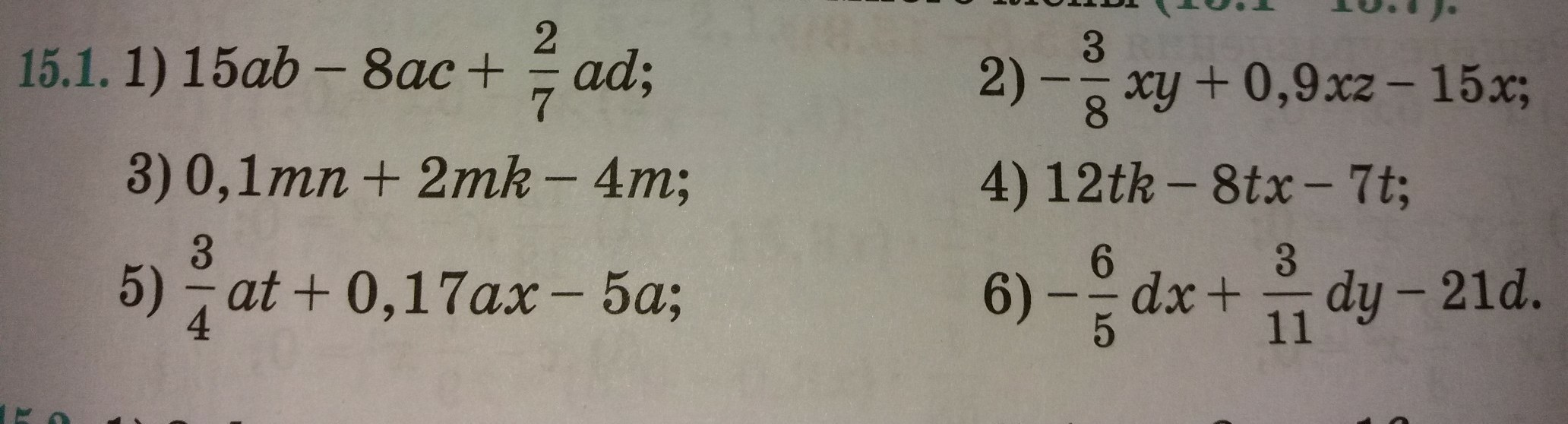 1) 15аb-8ac+2/7ad=a(15b-8c+2/7d)