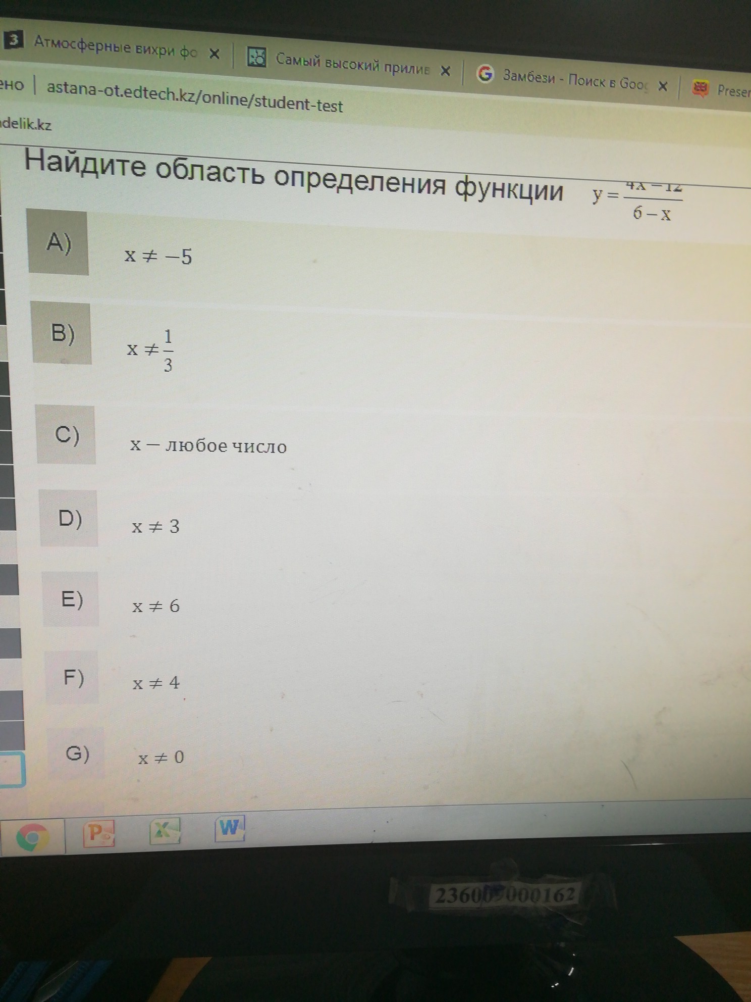 ответ Е, ибо если x=6, то 6-6=0, а на ноль делить нельзя