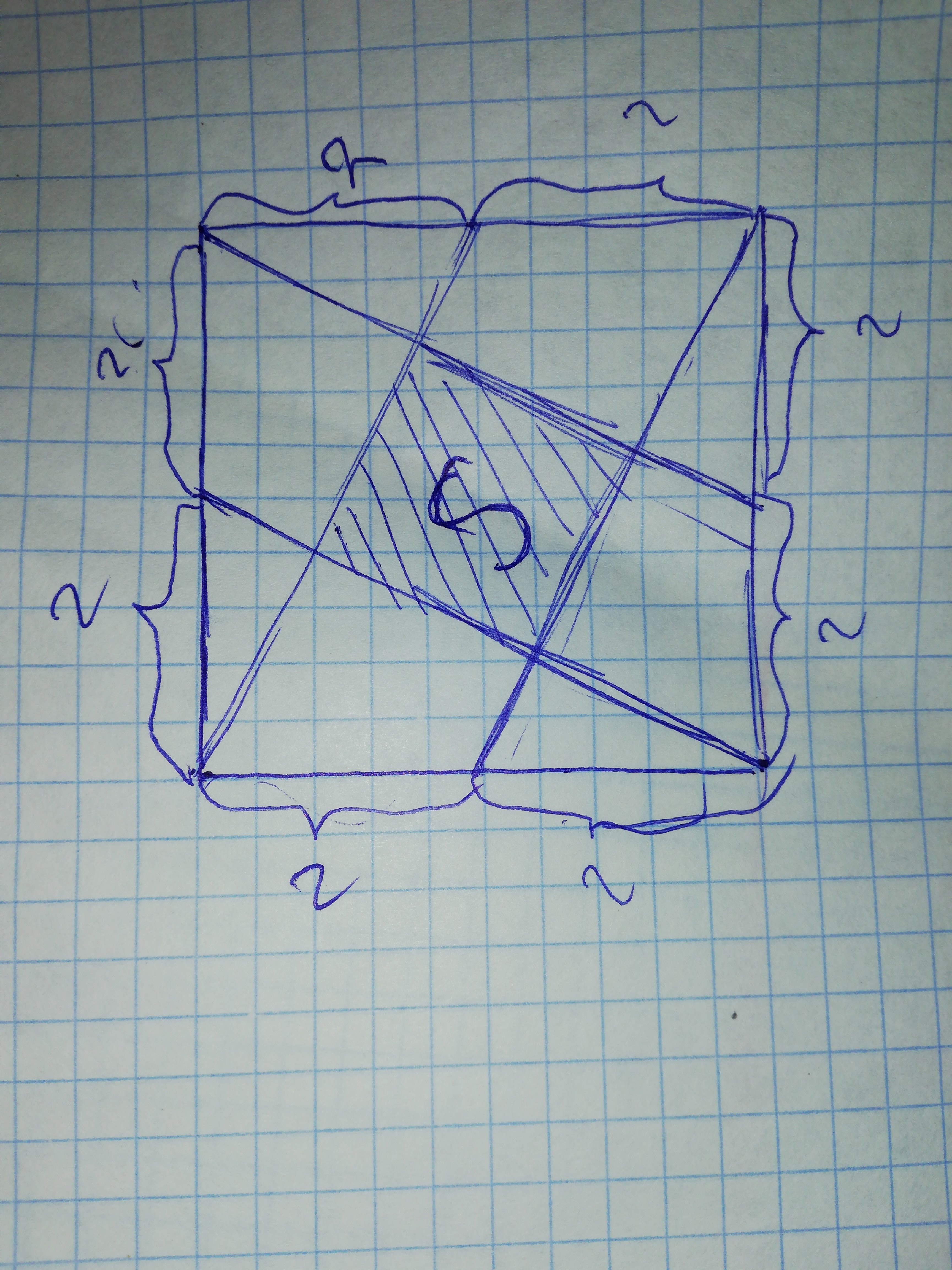 площадь большего 16 см а маленький в 2 раза меньше значит 8 см