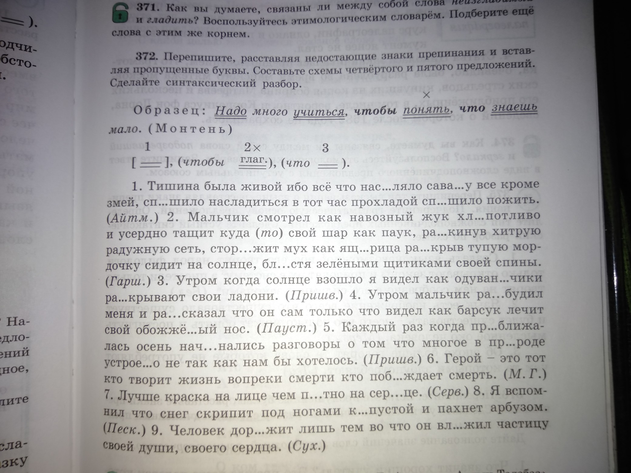 2)мальчик смотрел ,как навозный жук хлопотливо и усердно тащит куда-то свой шар, как паук, раскинув хитрую радужную сеть,сторожит мух как ящерица ,раскрыв тупую мордочку ,сидит на солнце,блестя зелеными щитиками своей спины.