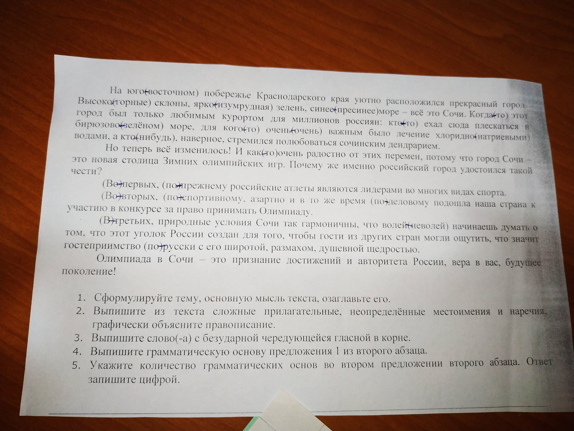 1) Главная мысль текста "Олимпиада в Сочи - признание достижений и авторитета России, вера в вас , будущее поколение !