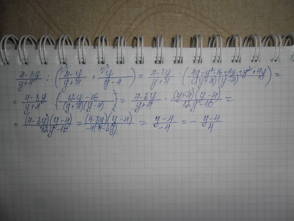 ((4-3у)/(у+4)/((4-у)/(у+4)+у/(у-4))