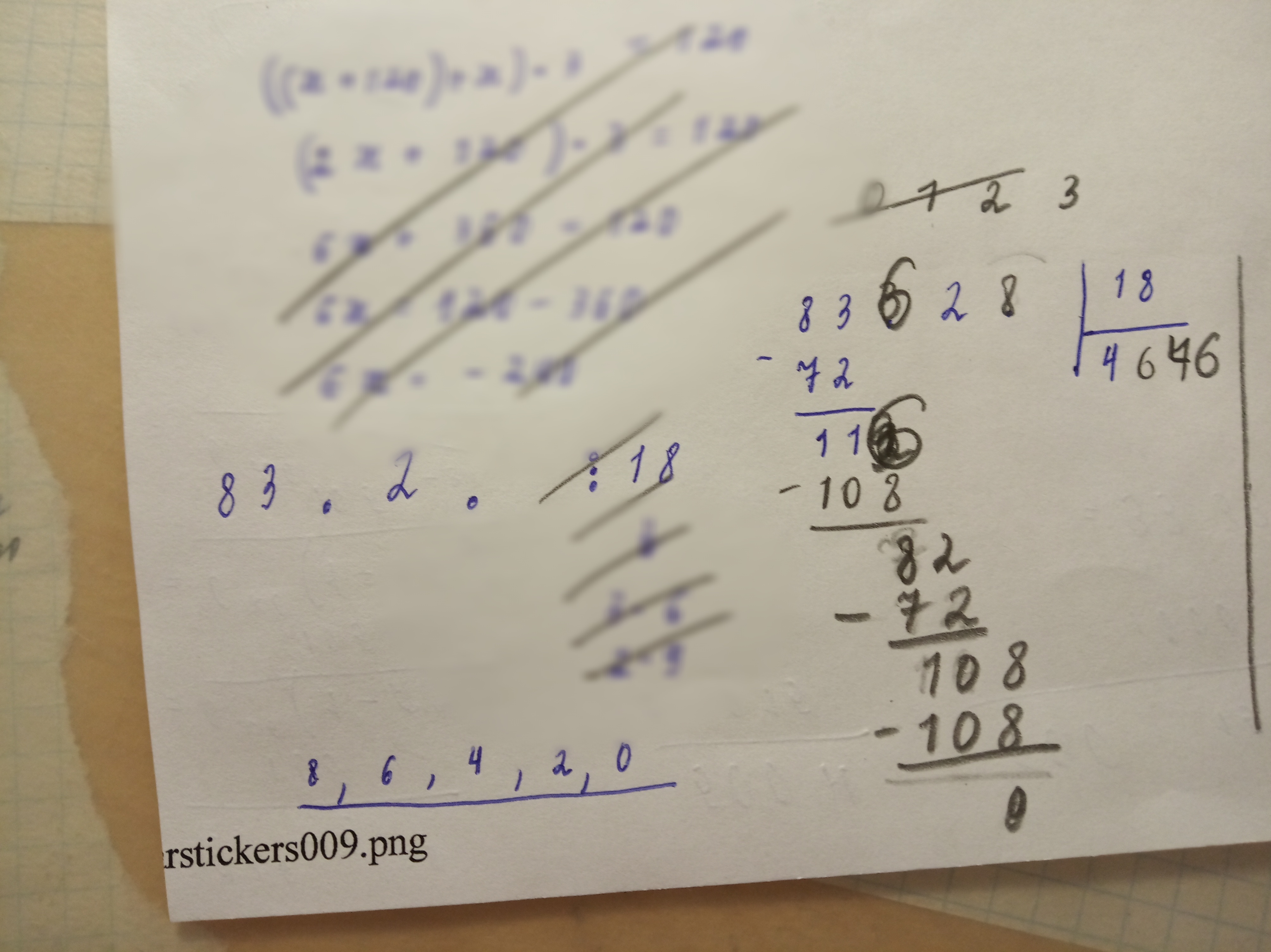 Записываю недо-уравнение столбиком. С первым действием всё ясно: 83 делится на 18, получается 4. В остатке 11.