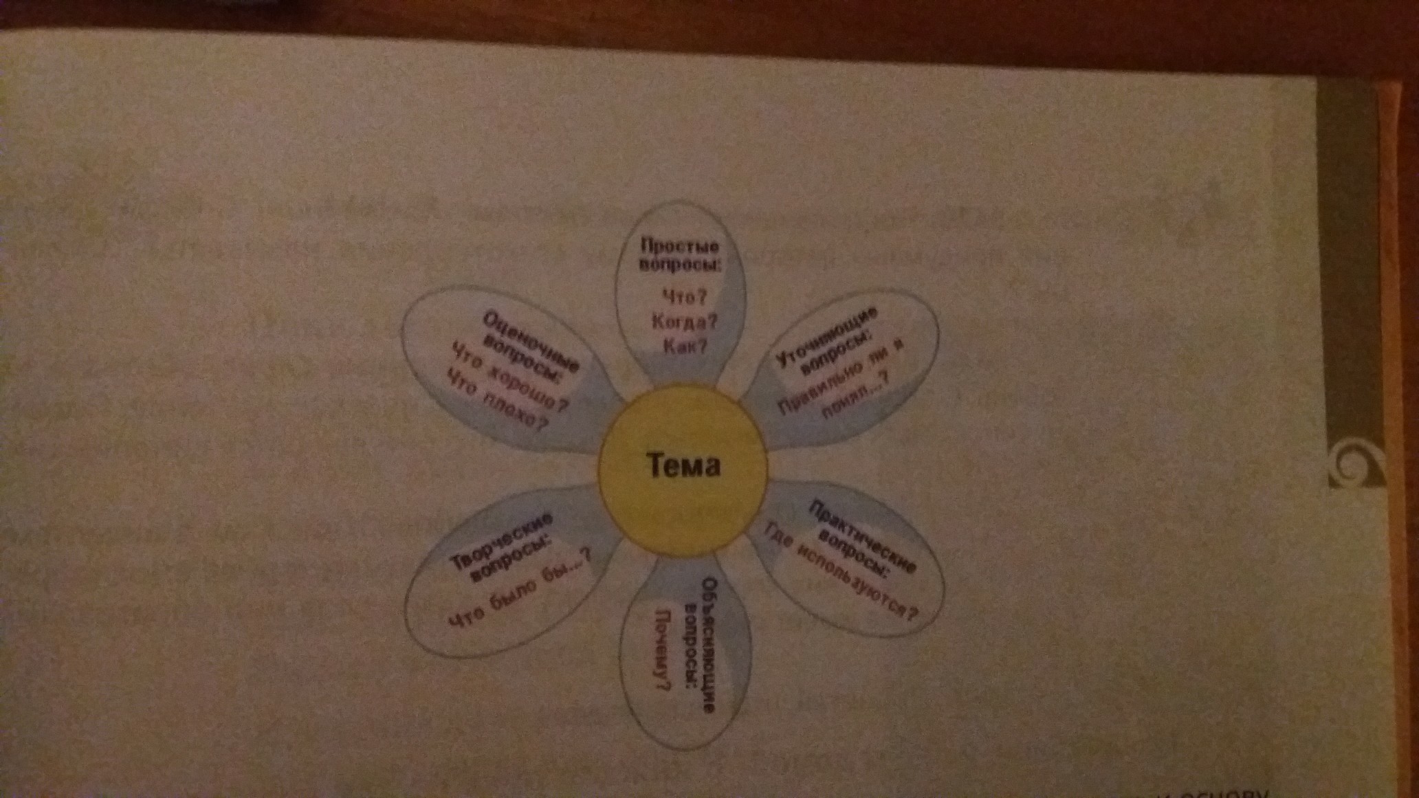 делаешь к каждым из вопросов по 1 примеру ну т.е. с каждого лепестка по 1 примеру и пишеш придложение тип: что произошло? и тд