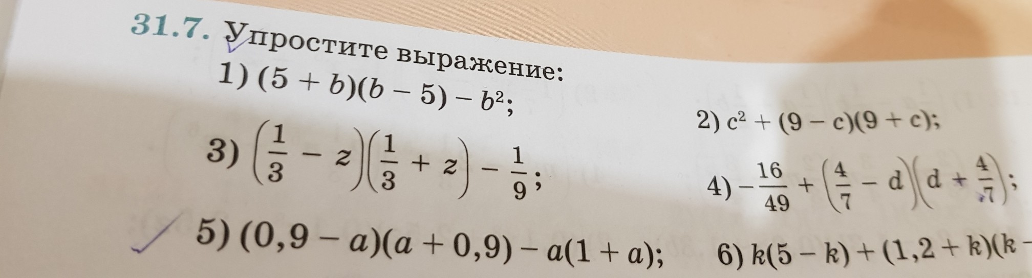 4) -16/49+(4/7-d)(d+4/7)=-16/49+(4/7-d)(4/7+b)=-16/49+16/49-d²=-d²