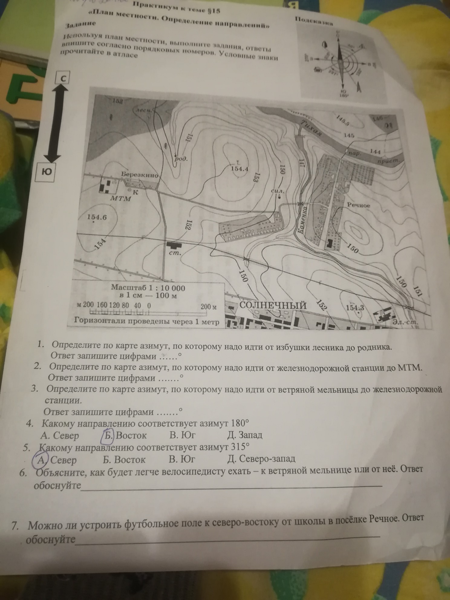6) от неё, так как на ветряной мельнице стоит высота 154.4, а в от неё - 153, велосипедисту легче ехать под гору.