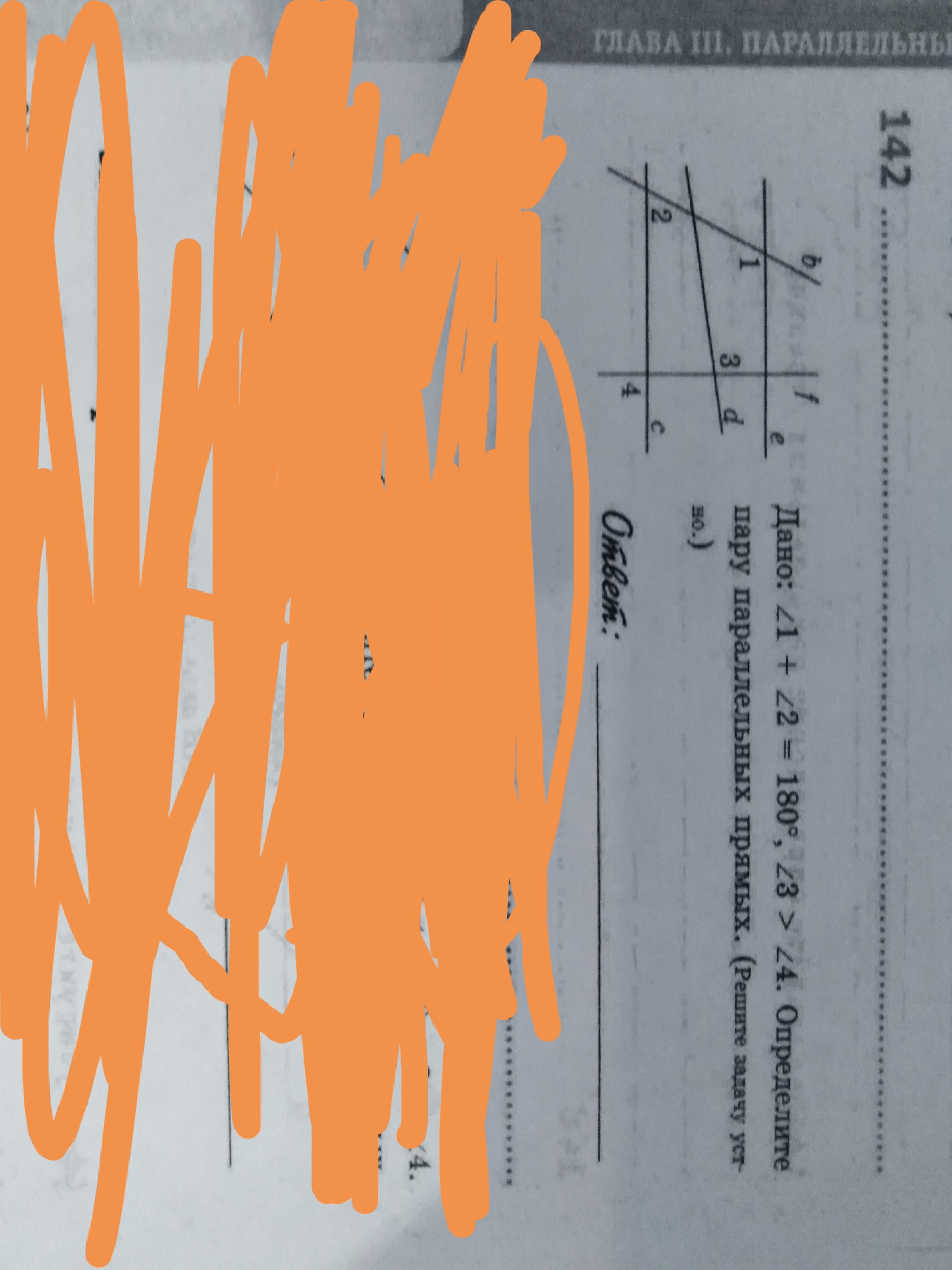 Дано:угол 1 + угол 2=180 градусов, угол 3> углу 4. Определите пару параллельных прямых. Помогите пожалуйта!!!