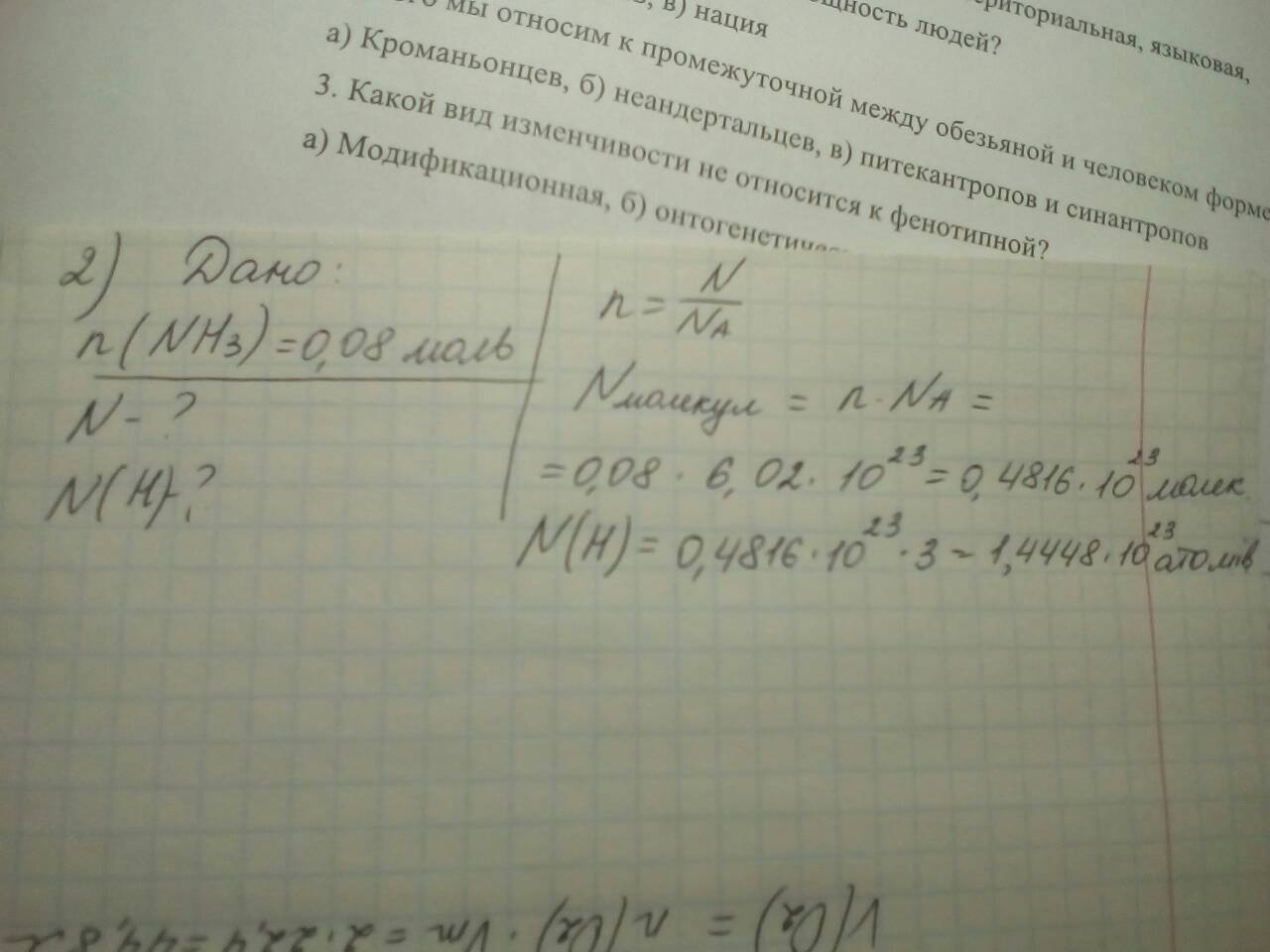 2)Обчисліть кількість молекул в 0,08 моль амоніаку NH3, а також укажіть кількість атомів Гідрогену в цій порції