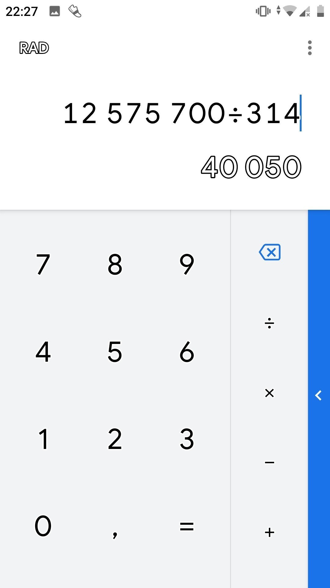 б) 12 575 700:314=6 287 850:157=2*9*25*89=178*225=40 050
