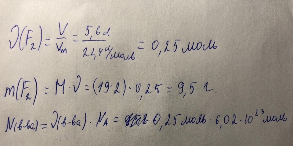 n(F2) = V(F2) / V(молярный) = 5.6 дм³ / 22.4 дм³/моль = 0.3 моль.