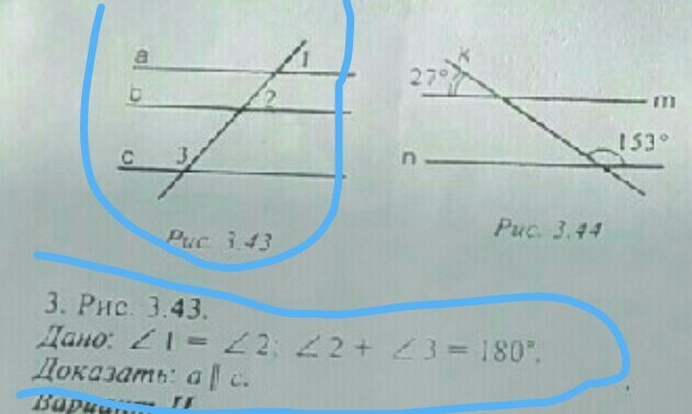 Угол см.у.3 и у.2 односторонние при секущей, они равны, значит по 2му признаку а||с