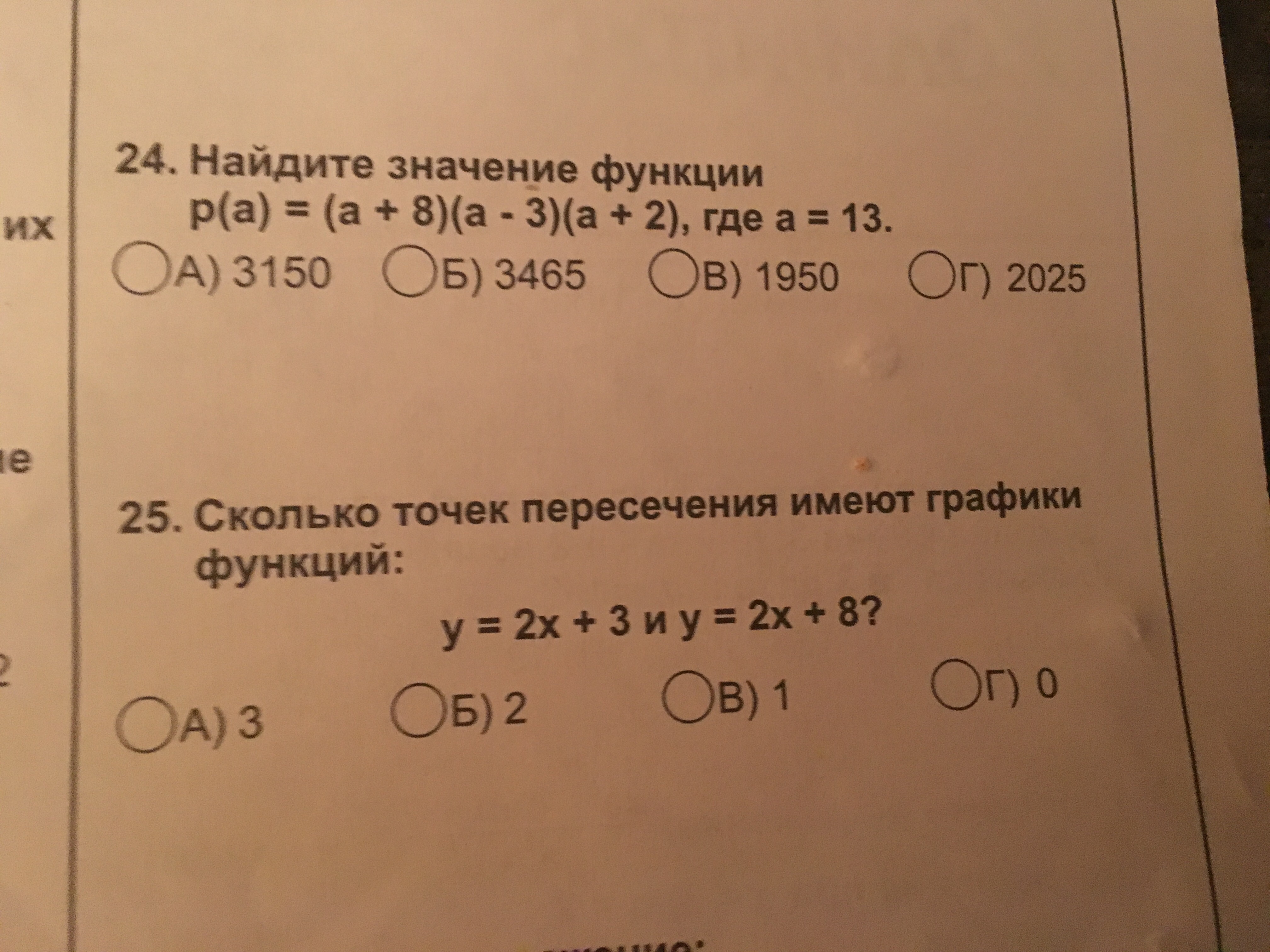 Линейные функции параллельные (коэффициенты при x такое же, а митинг не точки пересечения