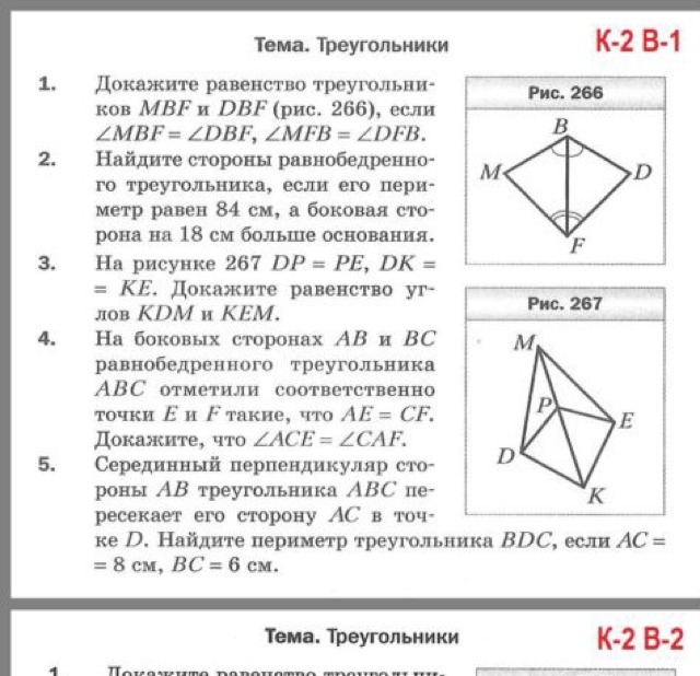 1. (угол MBF= углу DBF, угол MFB= углу DFB, сторона FB - общая) следовательно (тр. MBF = тр. DBF)