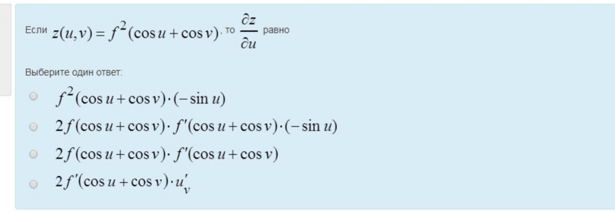 dz/du=2f(cosu+cosv)*f'(cosu+cosv)*(cos'u+cos'v)=
