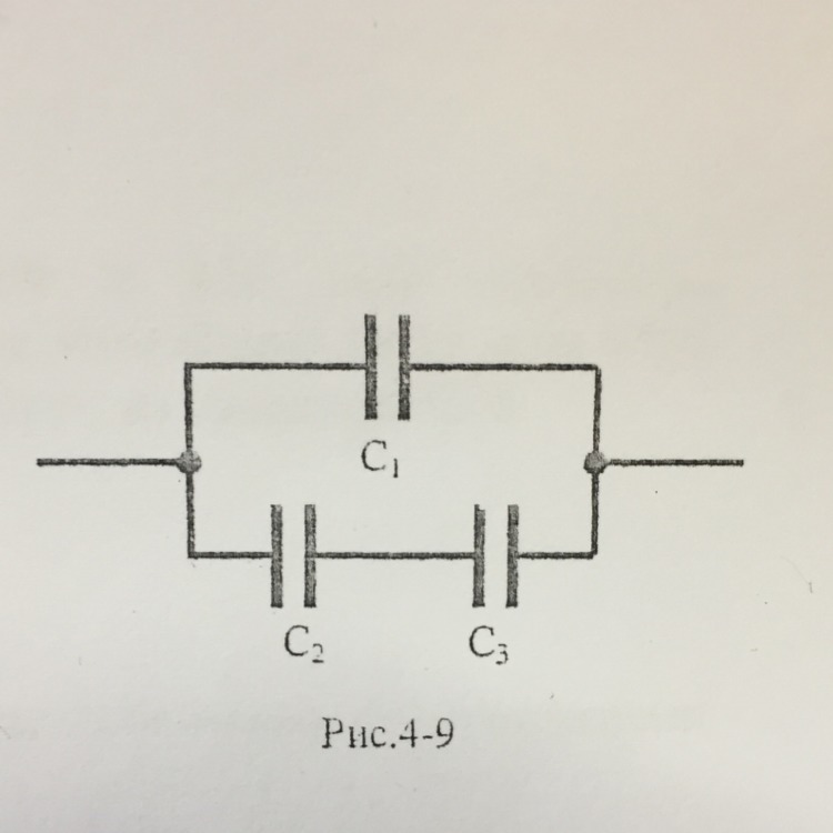 Емкость батареи конденсаторов, представленных на рисунке 4-9, С=5,8 мкФ. Какова емкость первого конденсатора, если С2=1 мкФ, С3=4 мкФ?