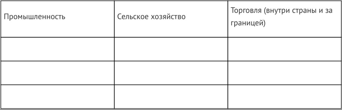 Назовите основные итоги экономического развития России при Петре I. Сформулируйте и систематизируйте их согласно основным направлениям экономики: