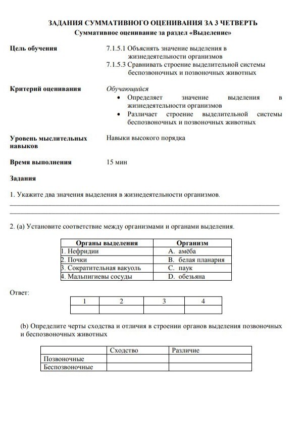 1)У позвоночных основной орган выделения - это почки. А у без позвоночных - это метанефридии